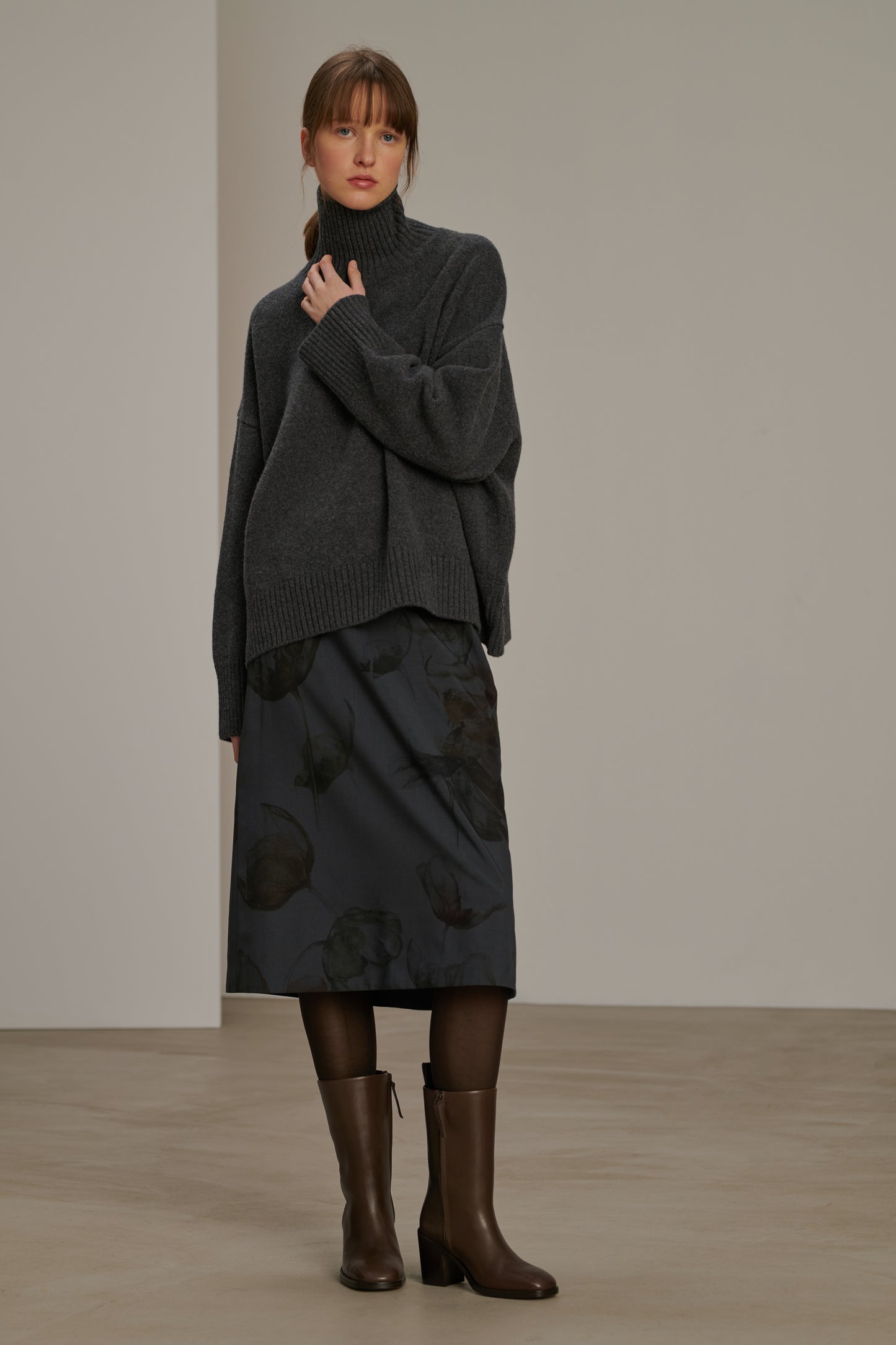 Printed wool canvas skirt anthracite grey