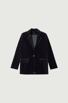CELESTIN is a smooth grey anthracite velvet trouser with blue-grey reflections. High waist, flared legs, with front and back pockets.
